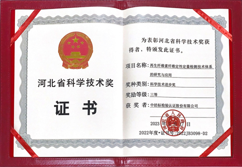 通用技術中紡院中紡標"再生纖維素纖維定性定量檢測技術體系的研究與應用"項目榮獲2022年度河北省科學技術進步獎