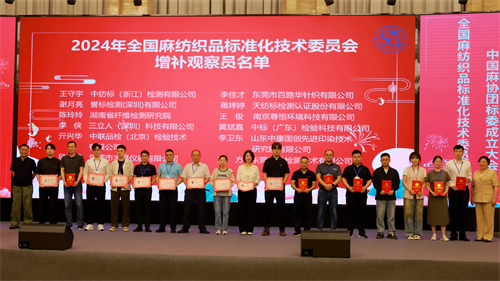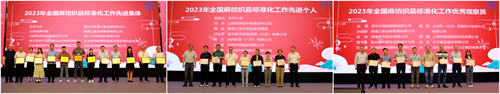 會議表彰了2023年度全國麻紡織品標(biāo)準(zhǔn)化技術(shù)委員會標(biāo)準(zhǔn)化工作的先進單位和個人,同時為新增補的觀察員頒發(fā)了證書。